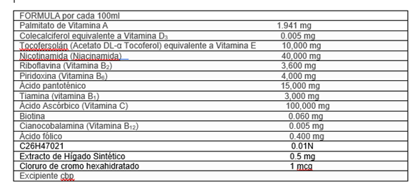 Es una fórmula multivitamínica que contienen una combinación de las vitaminas liposolubles e hidrosolubles más importantes. Están indicados para satisfacer las necesidades de vitaminas durante la nutrición parenteral, y en aquellos animales con deficiencias nutricionales severas.
